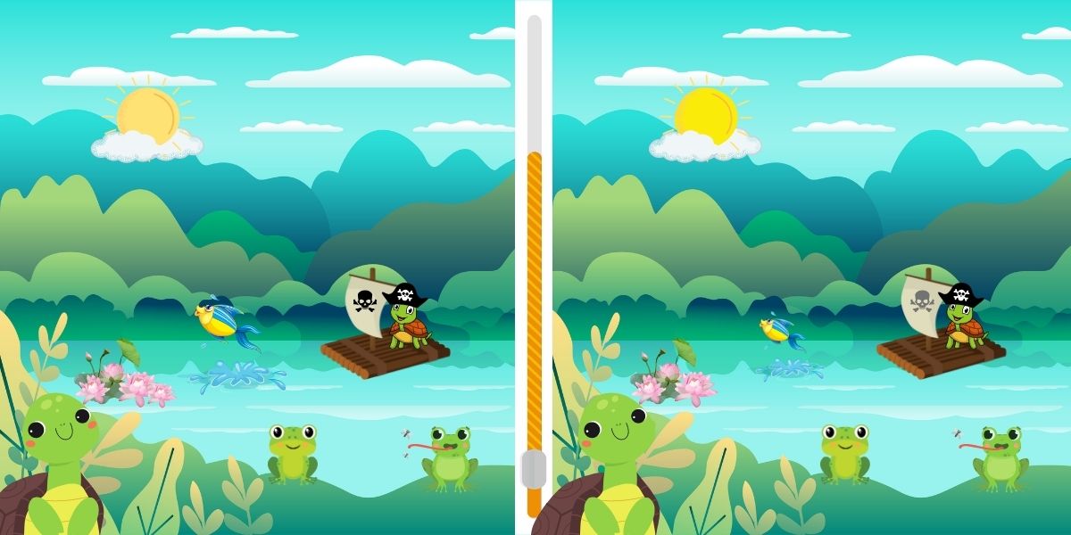 Can you spot the 6 differences in the frog lake scene? challenge yourself to complete it in less than 20 seconds!
